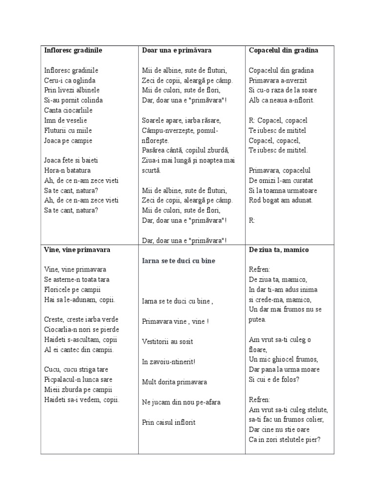 Cantece Primavara
