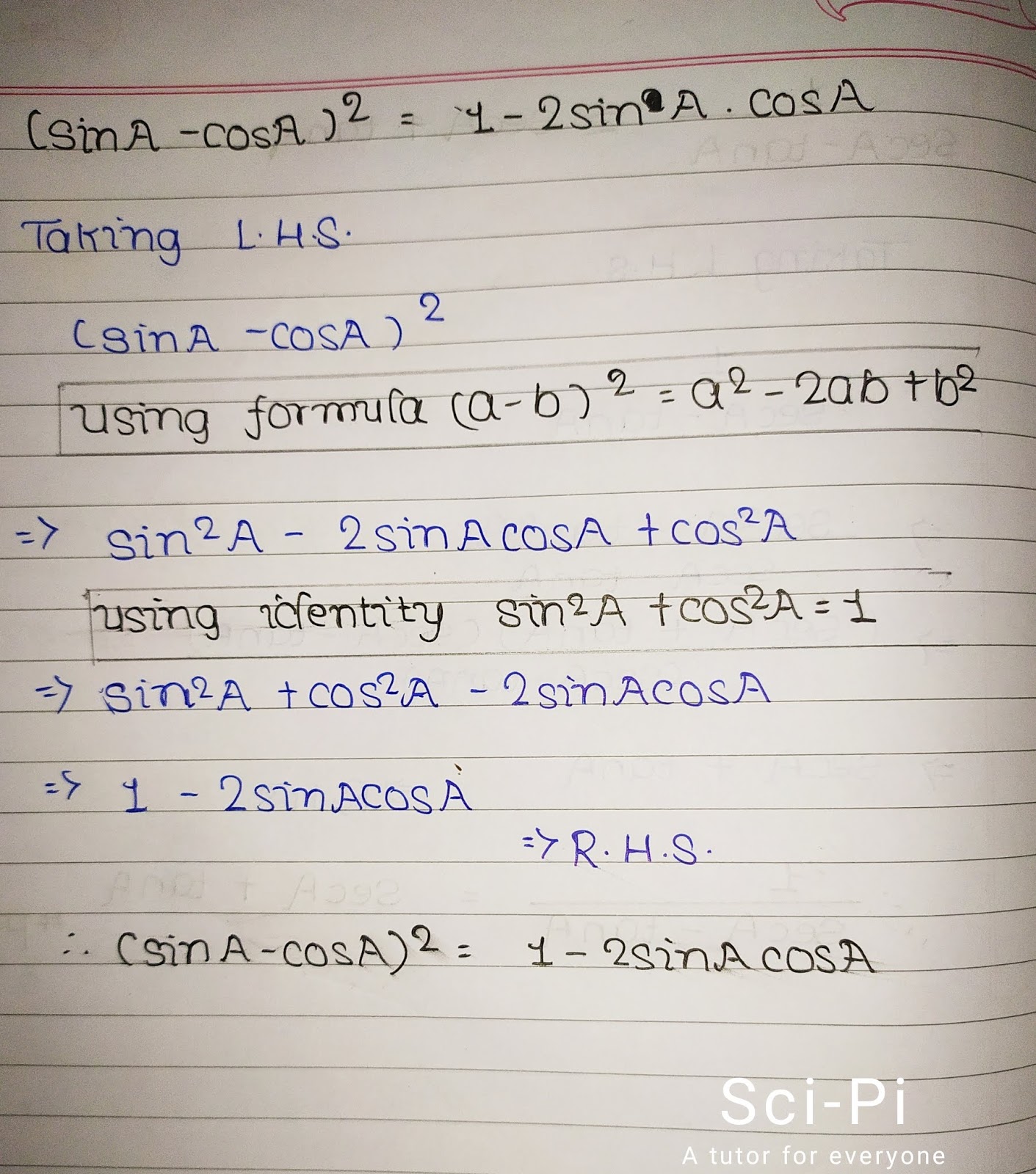 Sin A Cosa 2 1 2 Sina Cosa Prove Sci Pi Sci Pi Science And Mathematics Notes With Solutions