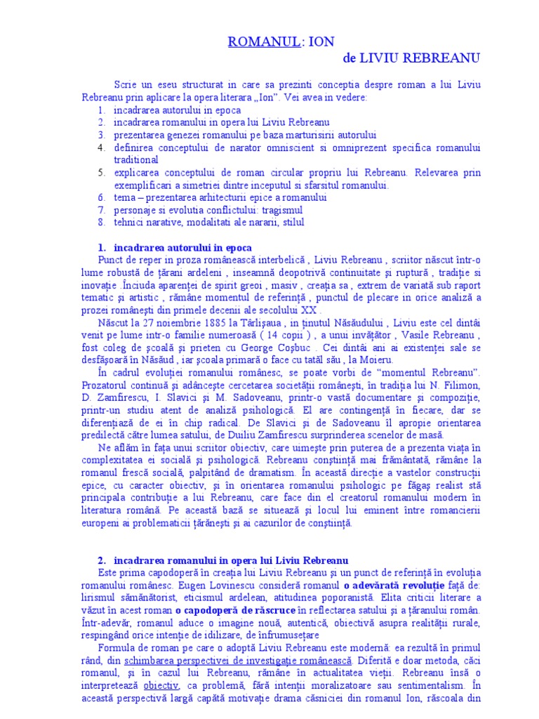 Eseu Ion De Liviu Rebreanu Pentru Bac Gmirea Com