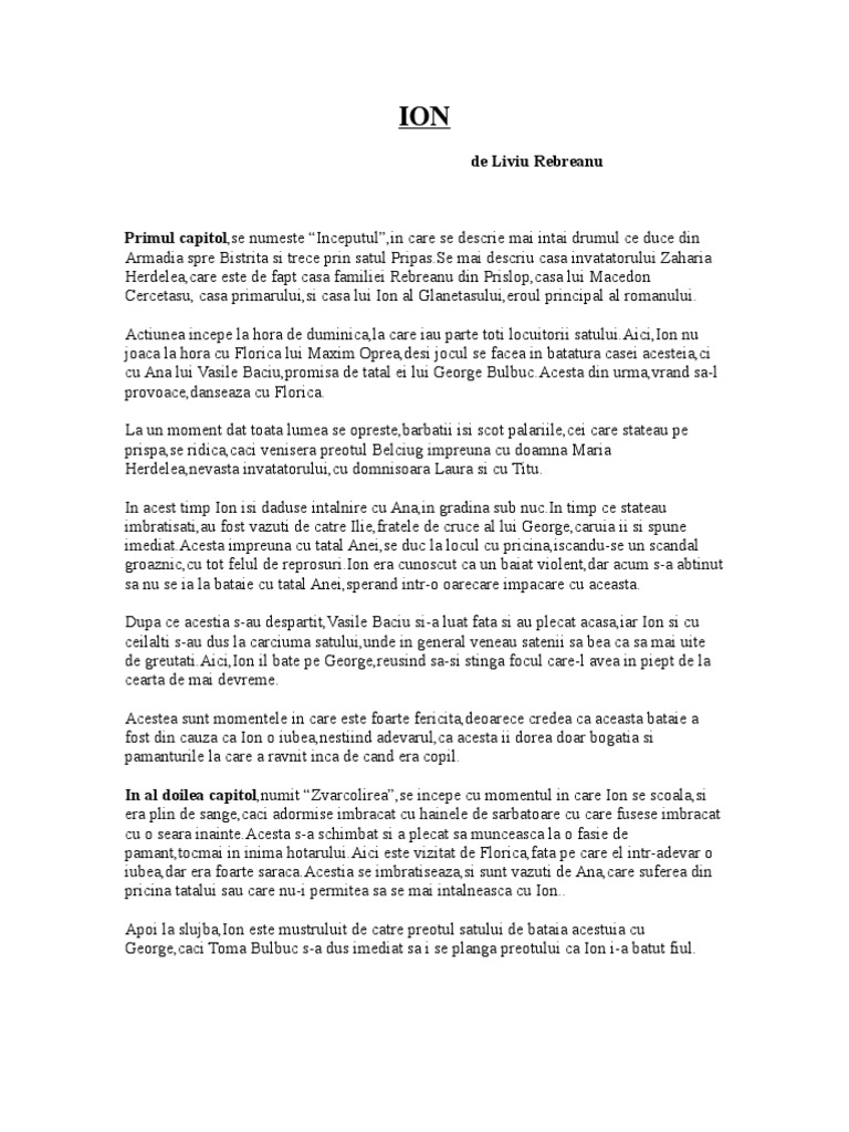 Doc Ion De Liviu Rebreanu Rezumat Cristy Adrian Academia Edu