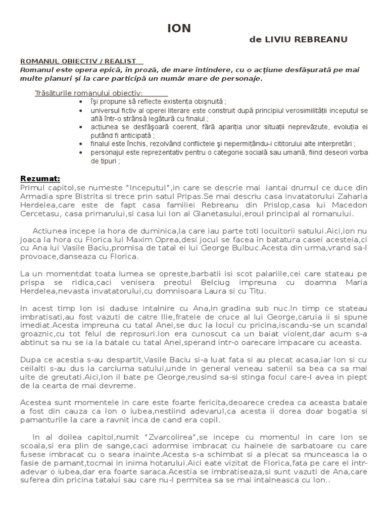 Doc Ion De Liviu Rebreanu Rezumat Cristy Adrian Academia Edu