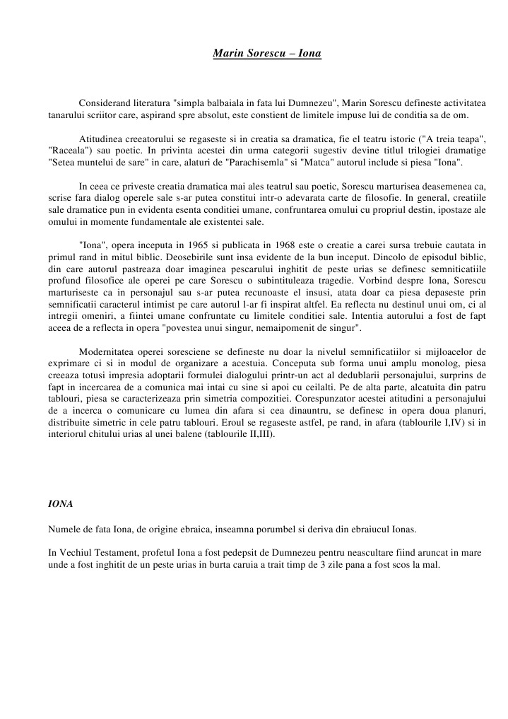 Comentarii Eseuri Bacalaureat Parabolă Dramatică Iona De Marin Sorescu Wattpad