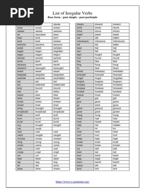 Regular And Irregular Verbs Breakthroughs List Of Irregular Verbs Pdf4pro