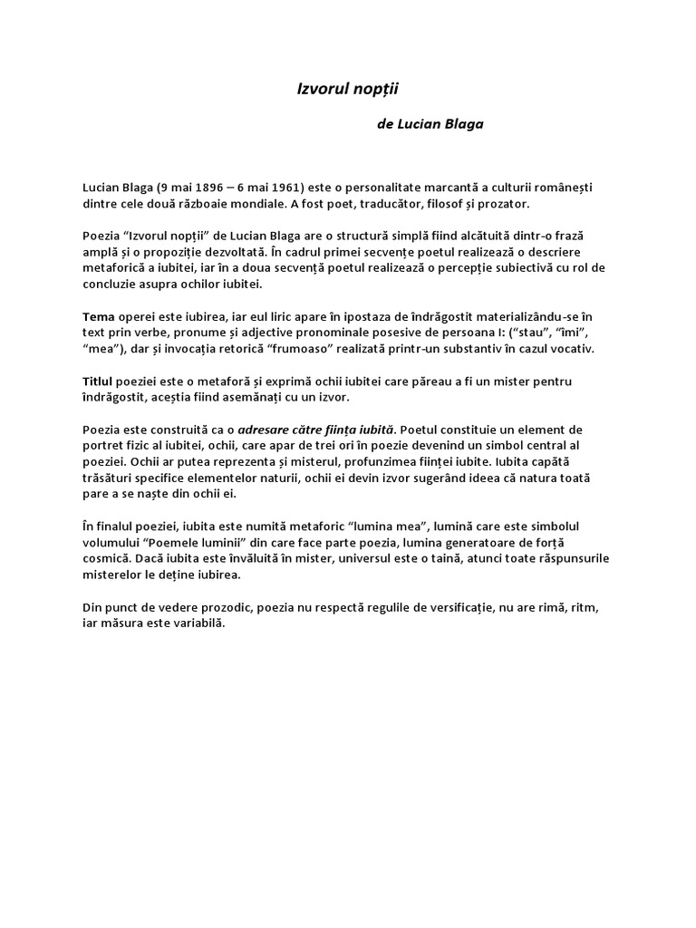 Referat Izvorul Noptii De Lucian Blaga 338367 Graduo