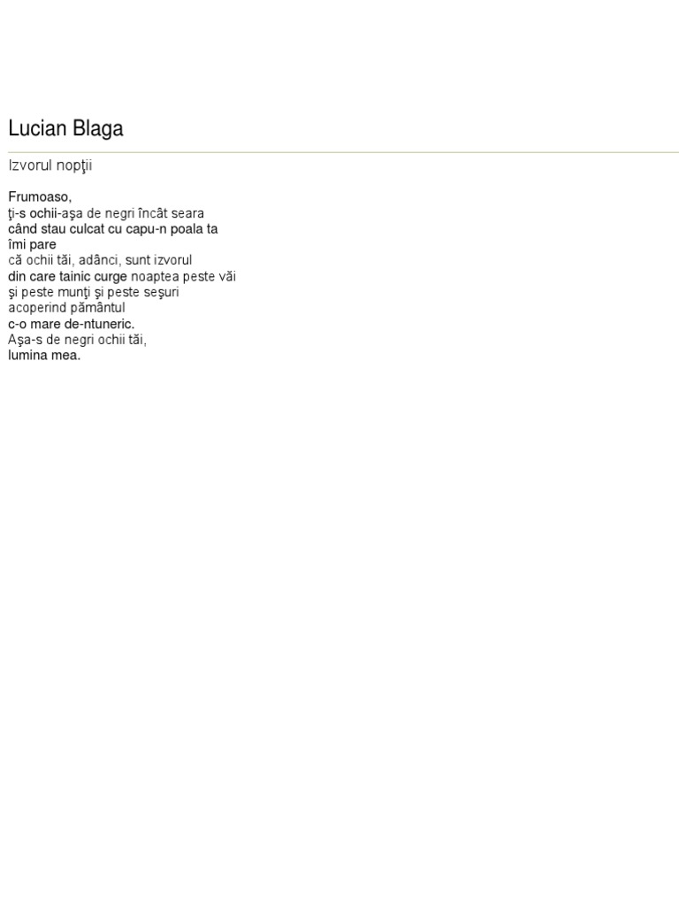 Izvorul Nopţii Lucian Blaga Limbasiliteraturaromanasite