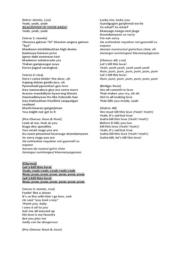 Lyrics Center Kill This Love Lyrics English Korean Pronunciation
