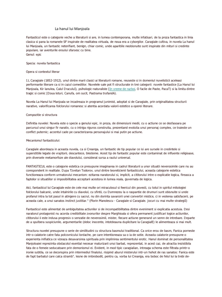 Doc La Hanul Lui Manjoala Comentariu Criss Madd Academia Edu