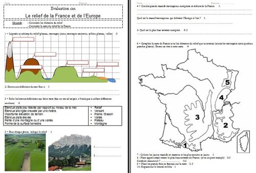 Le Relief En France Ce2 Exercice Evaluation Revision Lecon Pass Education