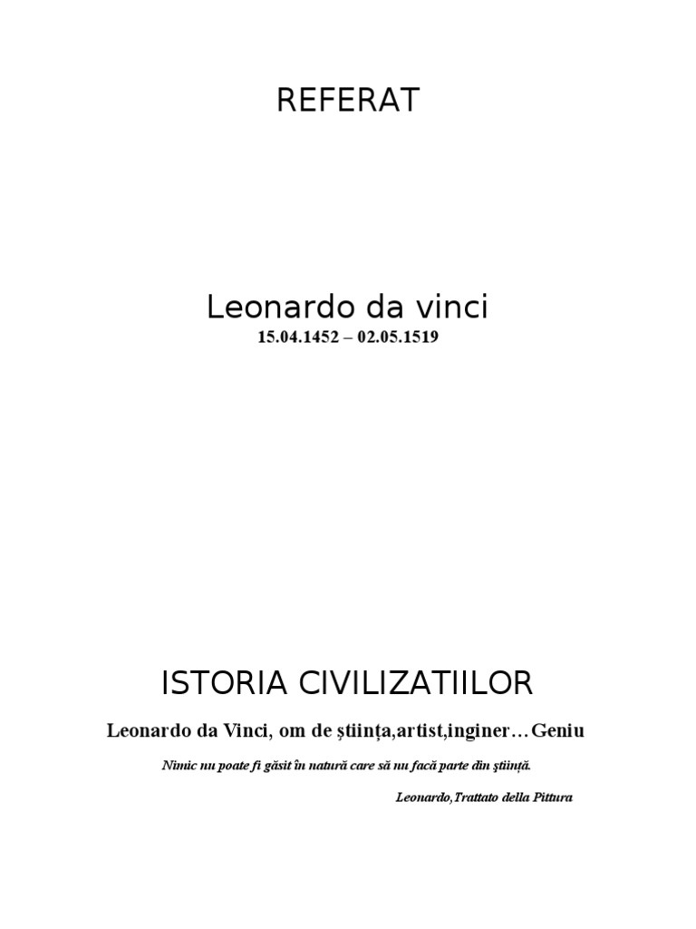 Referat Leonardo Da Vinci Om De Stiinţa Artist Inginer Geniu