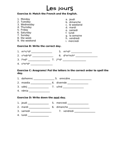 French Days Of The Week Worksheets Teachers Pay Teachers
