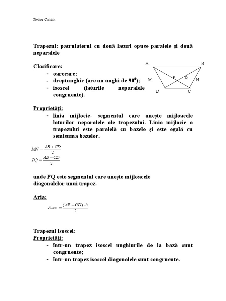 Trapez Teorie Dreptunghic Isoscel Linie Mijlocie Inaltime Arie Perimetru Youtube