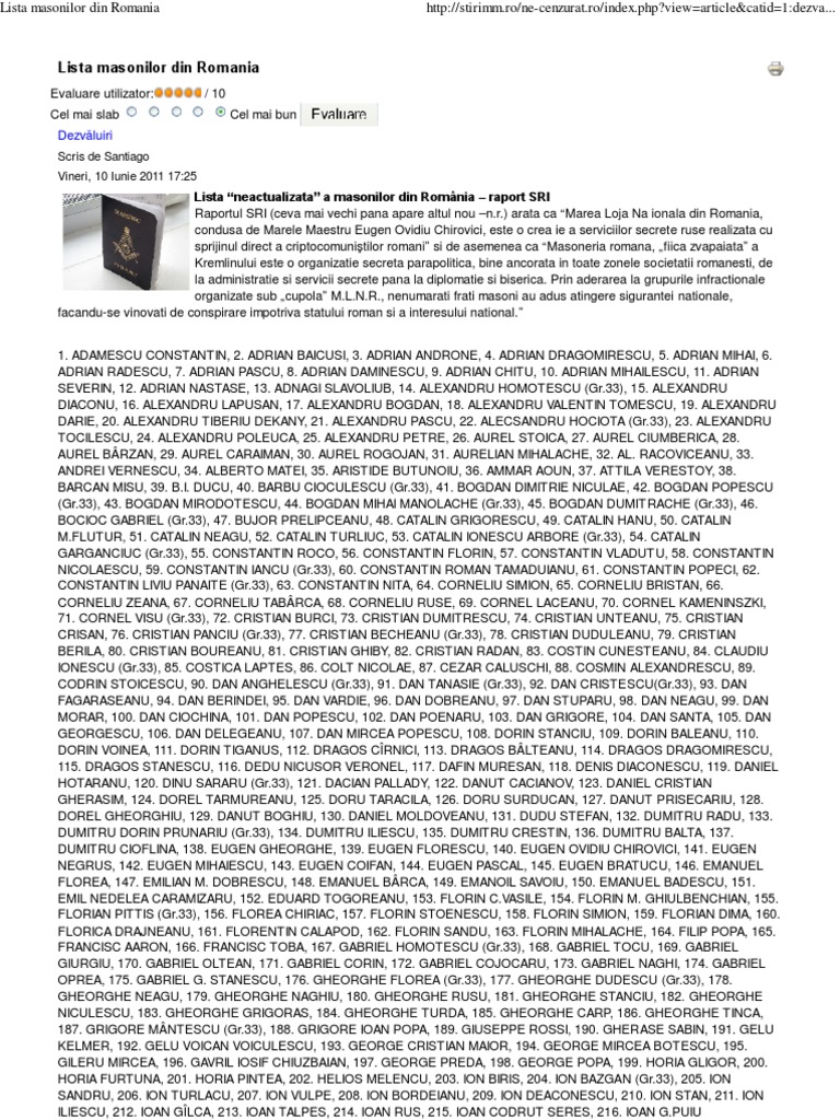 Raport Sri Lista Masonilor Din Romania Buna Ziua Iasi Bzi Ro